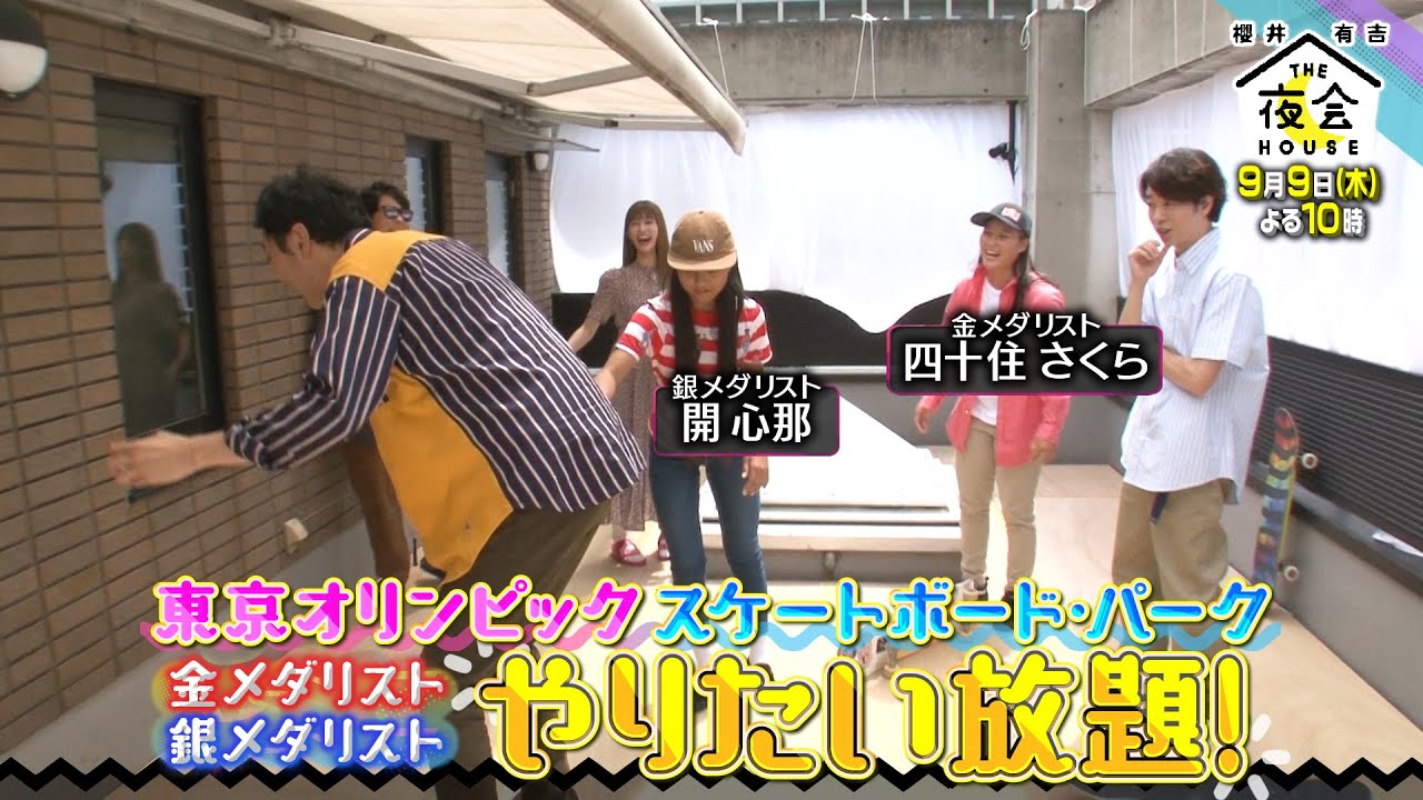 スケボー金メダルの四十住さくら、銀メダル開心那が櫻井有吉にスケボー伝授!スゴ技披露!13歳心那ちゃんの出演者への鋭いあだ名に爆笑!中村倫也もタジタジhttp://www.tbs.co.jp/the-yakai/