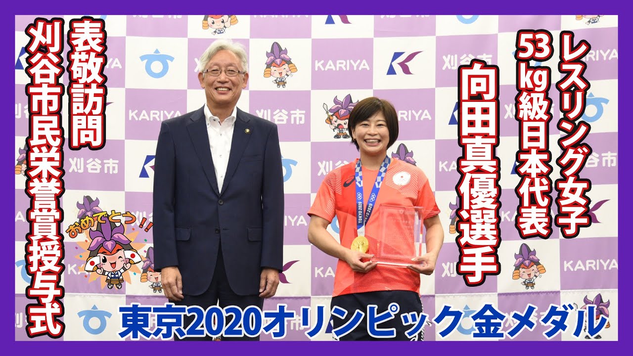 8月31日に東京2020オリンピックのレスリング女子53kg級で金メダルを獲得した、日本代表の向田真優選手が刈谷市役所を訪れました。その時の様子をご覧ください。