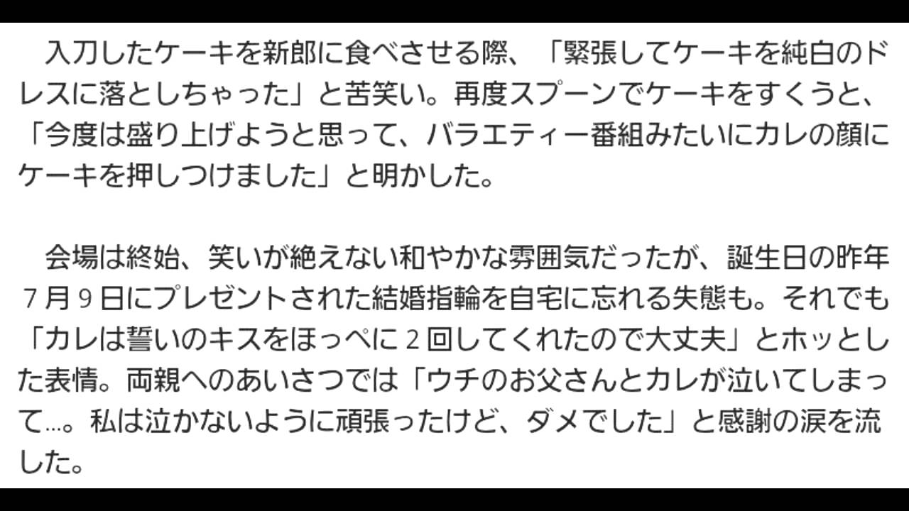 Share Facebook Twitter Pinterest LinkedIn 鈴木奈々、ドタバタ披露宴!幸せすぎて?結婚指輪忘れちゃった サンケイスポーツ 11月3日 7時0分配信鈴木奈々は新郎に「口は恥ずかしいので、ほおにしてほしい」と懇願して永遠の愛を誓った(写真:サンケイスポーツ) 1月に茨城県内に住む工場勤務の一般男性(26)と結婚したタレント、鈴木奈々(26)が2日、東京・港区のホテルインターコンチネンタルホテル東京ベイで挙式・披露宴を開いた。 今回は親族のみ3 指輪結婚式鈴木奈々