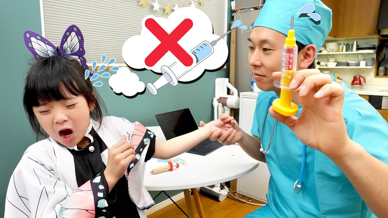 さなちゃんは注射が大きらい!でもご褒美のアイスは食べたい!りとくんは注射全然平気みたいでいいなー。おじいちゃんが教えてくれた鬼滅の刃みたいな「呼吸」ほんとに効くのかな?