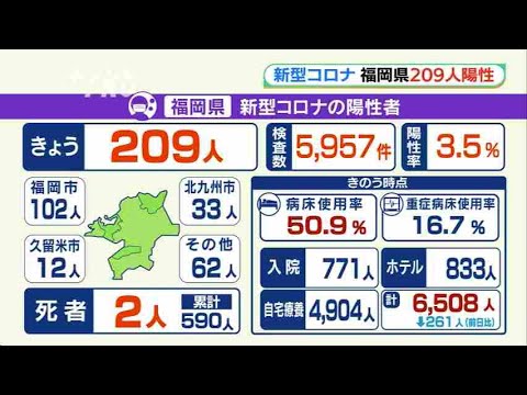 福岡県は14日、新型コロナウイルスの検査で新たに209人の陽性を発表しました。