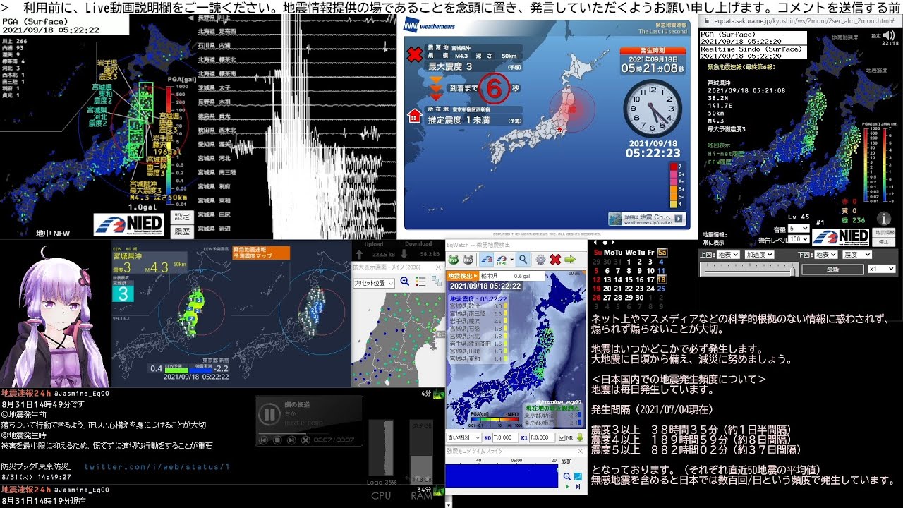 【1080p HD・超低遅延】地震監視・24時間LIVE みるきくリアルタイム24