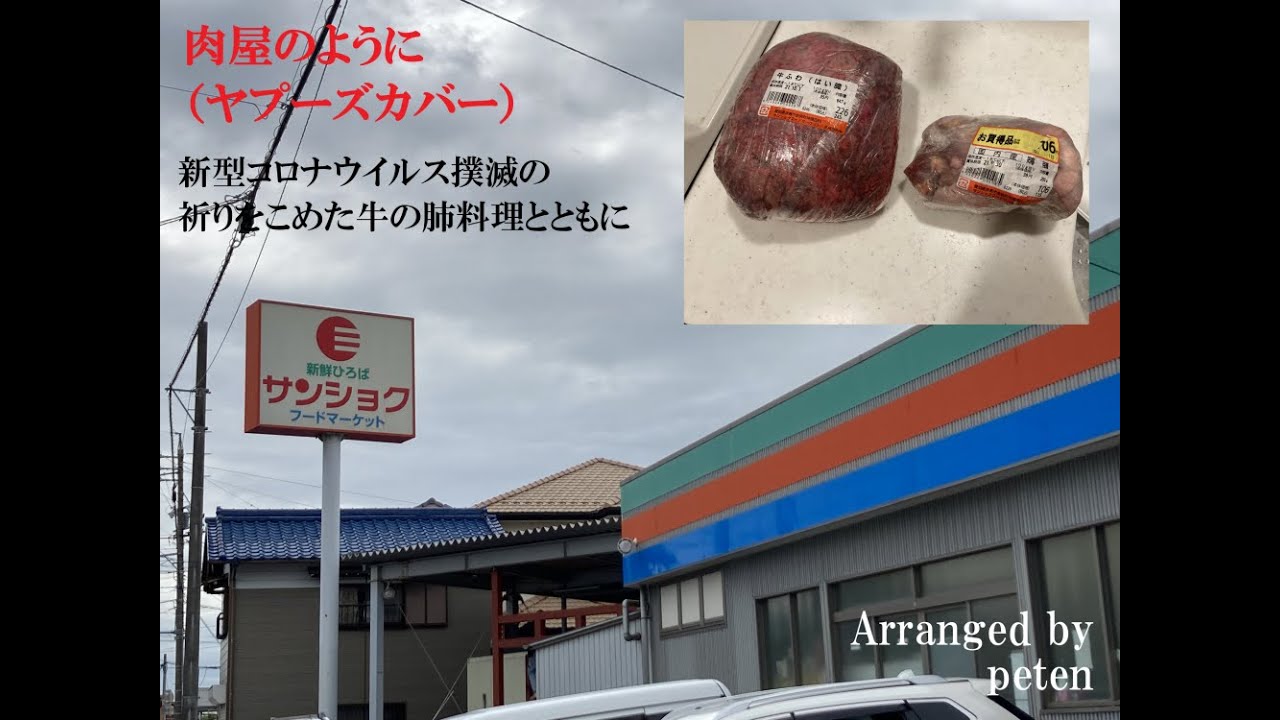 2008年発売のCD「子孫に語り継ぎたいヤンデレ曲集(継ぐな)」にて 発表したヤプーズの名曲「肉屋のように」のカバー音源です。 一昨日牛や豚がドナドナされたあと直送されてきてそうな スーパーで、安かったので牛の肺とか鶏頭とか買ってきて 調理してたら、この曲に合いそうだったのでMV風にしてみました。 petenふわヤプーズヤンデレ戸川純新型コロナウイルス新型コロナウイルスで肉料理