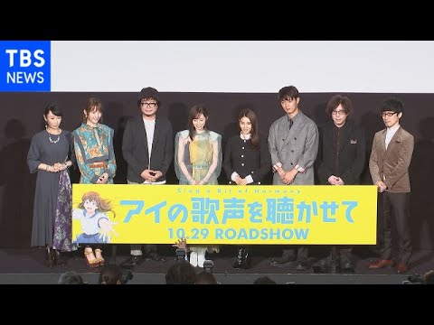 アニメ映画「アイの歌声を聴かせて」の完成披露試写会に、声優を務めた土屋太鳳さん、福原遥さんらが登場。