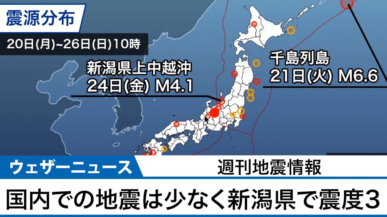 この1週間で国内で観測された地震回数は前週に比べると少ない水準です。