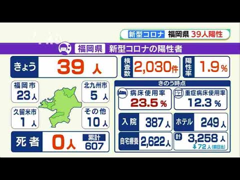福岡県は27日、新型コロナウイルスの検査で新たに39人の陽性を発表しました。