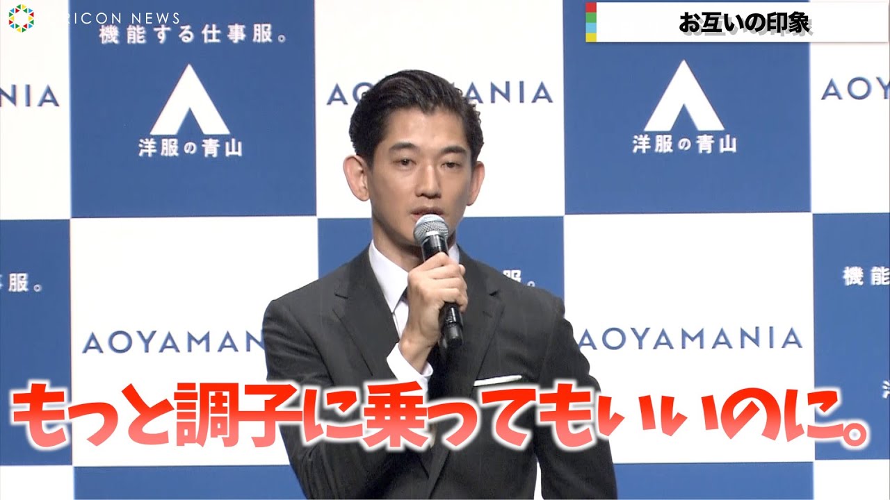 俳優の永山瑛太、松本穂香が28日、都内で行われた『洋服の青山』の新CM発表会に出席した。