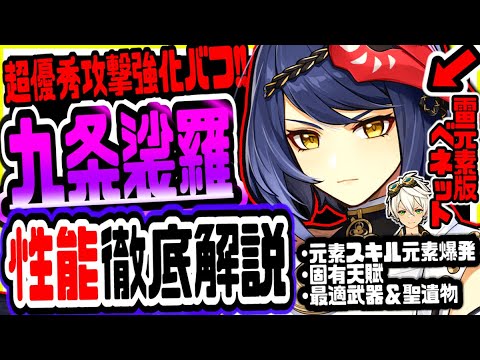 原神げんしんのver2.1新キャラ九条裟羅解説。この他にも稲妻新キャラ宵宮早柚雷電将軍九条心海アーロイの性能解説や公式最新情報新ガチャ新イベント攻略動画も上げています。最後にこの動画を見てる人にお願いです。また攻略動画を作って欲しいなと感じた人はぜひ高評価を押してべあてぃぼんを応援してください。原神で最も重要な原石報酬などの情報を逃して後悔することや無課金イベント攻略新キャラや武器ガチャの判断に迷うことが無くなります。このチャンネルではリーク画像や情報を扱っていません。考察情報も公式情報を元に楽しむ内容となっています。