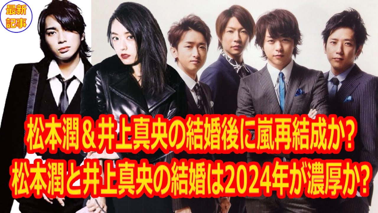 嵐が昨年末で活動を休止し、今年1月の井上の誕生日に入籍するのではとみられていたが、何も動きはなくスルー。松本が再来年までスケジュールをびっしり入れたことで、結婚は再び遠のいたとみられる。