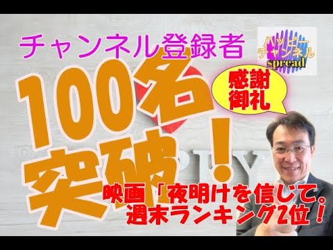 Share Facebook Twitter Pinterest LinkedIn この度、ハッピーチャンネル登録者数が100名を突破致しました!おめでとうございます。また映画「夜明けを信じて。」も週末ランキング2位!を獲得致しました!皆様のご尽力に心より感謝いたします! 今後も、幸福の科学の最新情報、大川隆法総裁の教えなど随時お届けして参りますのでよろしくお願いいたします。 諫山征和 夜明けを信じて。