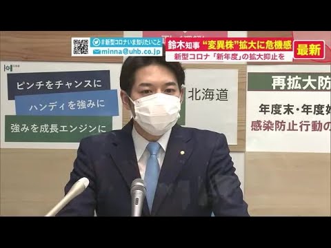 新年度のこの時期、変異株拡大に一層の警戒が必要です。4月2日も20人の患者に「変異株感染の疑い」が確認された北海道内。鈴木知事は会見で、新年度の感染拡大に強い警戒感を示し、感染防止対策の徹底を呼びかけました。