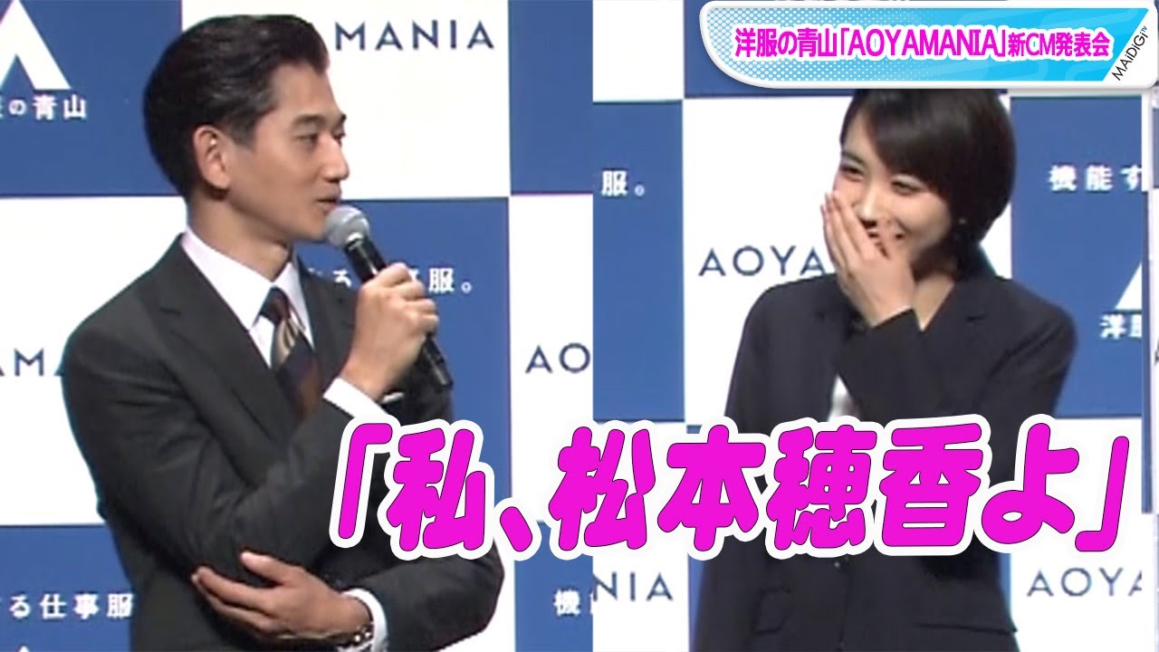 俳優の永山瑛太さんと女優の松本穂香さんが9月28日、東京都内で行われた「洋服の青山 新CMシリーズAOYAMANIA 公開記者発表会 」に登場した。