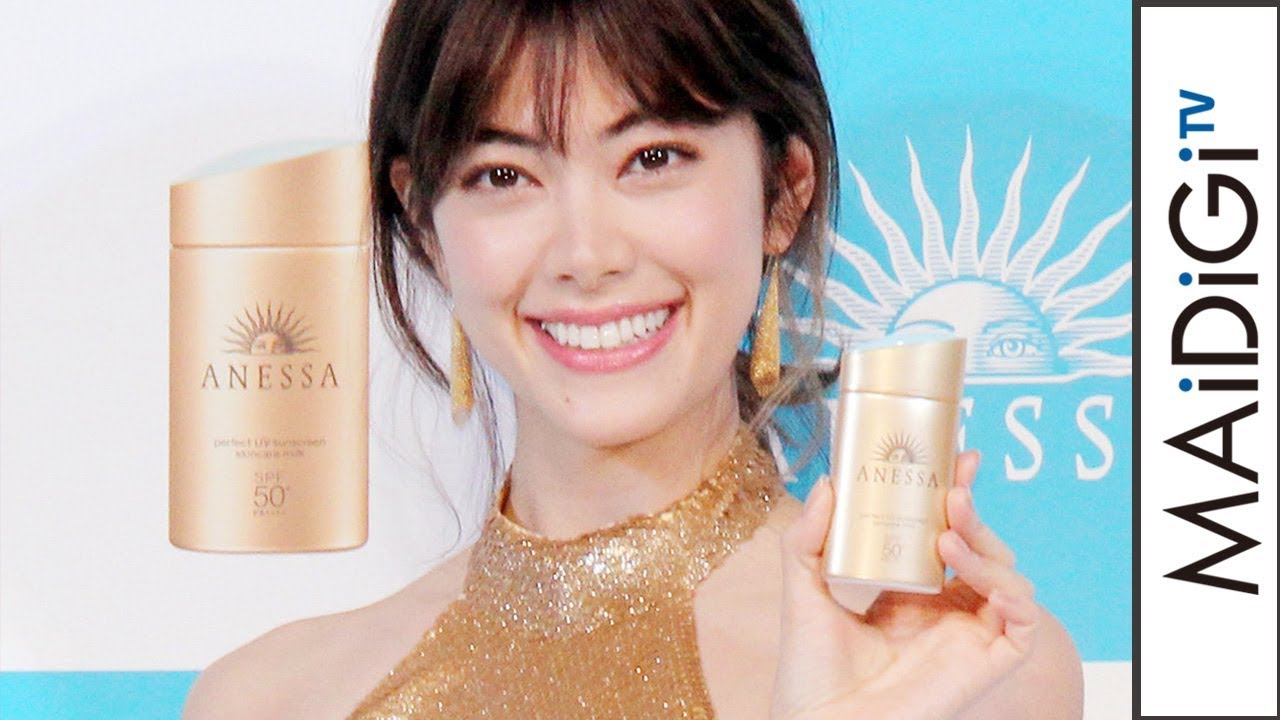 モデルの森星さんが2月20日、東京都内で開かれた資生堂ジャパンの日焼け止めブランド「アネッサ」の新CM・新製品発表会に登場。自身がプロデュースしたというゴールドのドレス姿の森さんは「キュートさを意識したドレスです。(製品の)ボトルをイメージしたこだわりもあります」と紹介し、美しい背中と美脚を披露した。