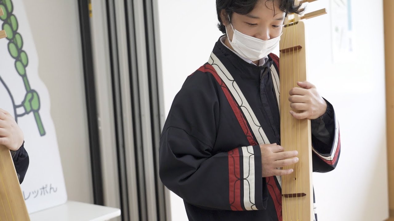 ウポポイが臨時休業中のなか、職員は日々研鑽を積んでいます。 この日、体験学習館で行われていたのはアイヌ楽器演奏の練習。 先輩職員の指導のもと、音やリズムを確認しながら繰り返し練習します。 upopoiアイヌモシㇼ