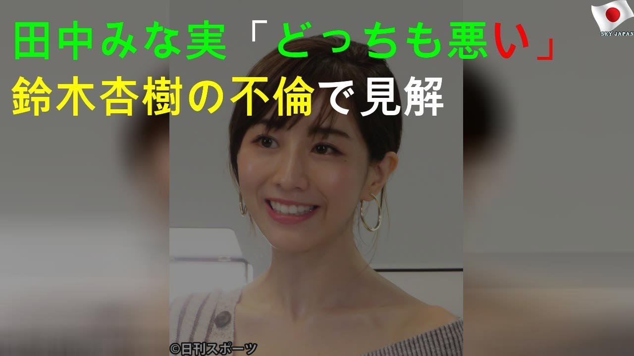 2020年2月9日日曜日 田中みな実「どっちも悪い」鈴木杏樹の不倫で見解 | Nice Story 女優鈴木杏樹(50)と劇団新派の俳優喜多村緑郎(51)の不倫が発覚したことについて芸能界からさまざまな声が上がった。 #Nice_Story 2020年2月9日日曜日NiceStory女優鈴木杏樹(50)と劇団新派の俳優喜多村緑郎(51)の不倫が発覚したことについて芸能界からさまざまな声が上がった。田中みな実「どっちも悪い」鈴木杏樹の不倫で見解鈴木杏樹