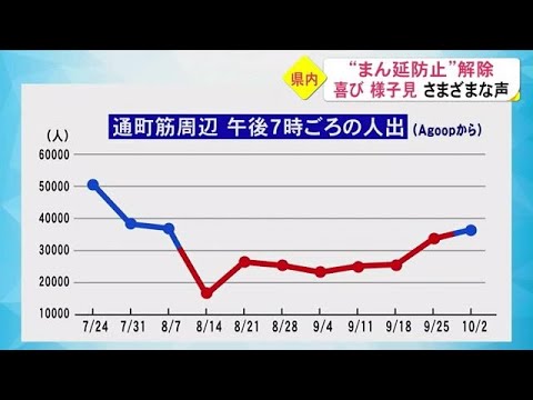 その後、人出は少し増えましたが、「まん延防止措置」解除後初の週末となった2日は、適用直前の8月7日とほぼ変わりませんでした。