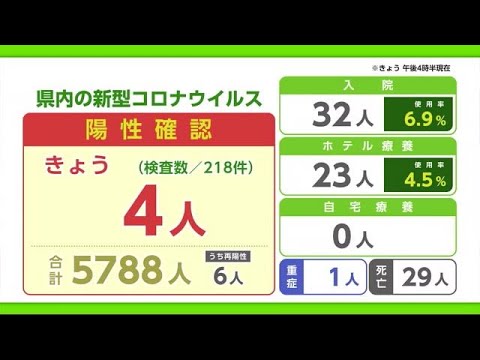 Share Facebook Twitter Pinterest LinkedIn 県内の新型コロナの状況です。 県は8日新たに218件の検査があり、佐賀市、唐津市、伊万里市、鹿島市でそれぞれ1人、あわせて4人の新型コロナの陽性が確認されたと発表しました。 現在32人が入院していて病床使用率は6.9%、1人が重症です。23人がホテルで療養していて使用率は4.5%です。 コロナ陽性佐賀県新型コロナ