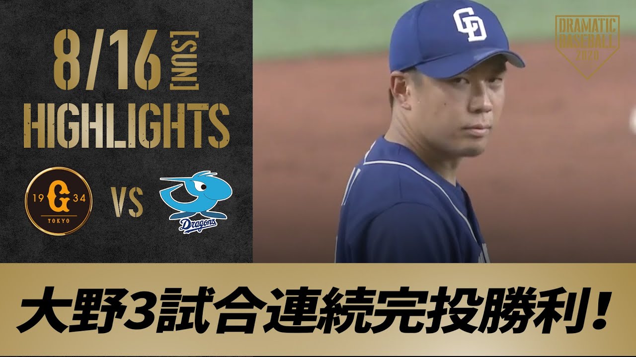 【ハイライト】8/16 先発大野が球団14年ぶりとなる3試合連続完投勝利!中日が連勝【巨人対中日】