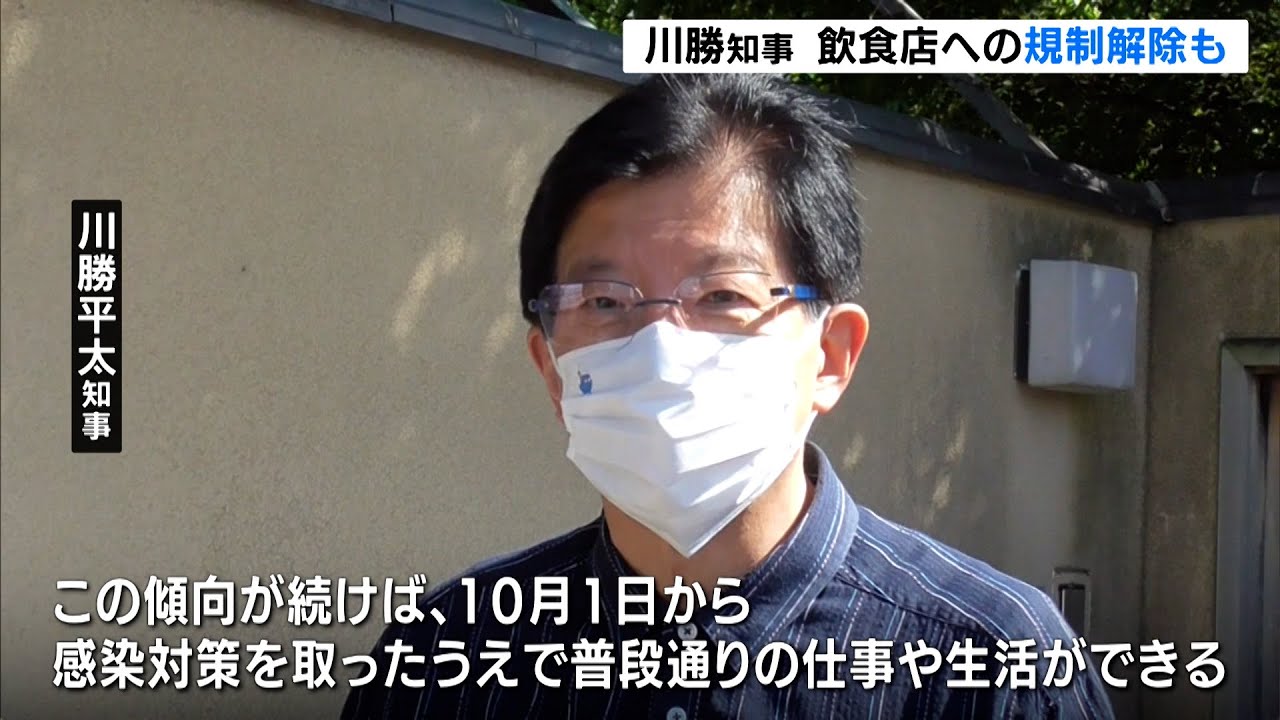 <川勝平太知事>「よかったですね。この傾向が続けば、10月1日から感染対策を取ったうえで普段通りの仕事や生活ができる」