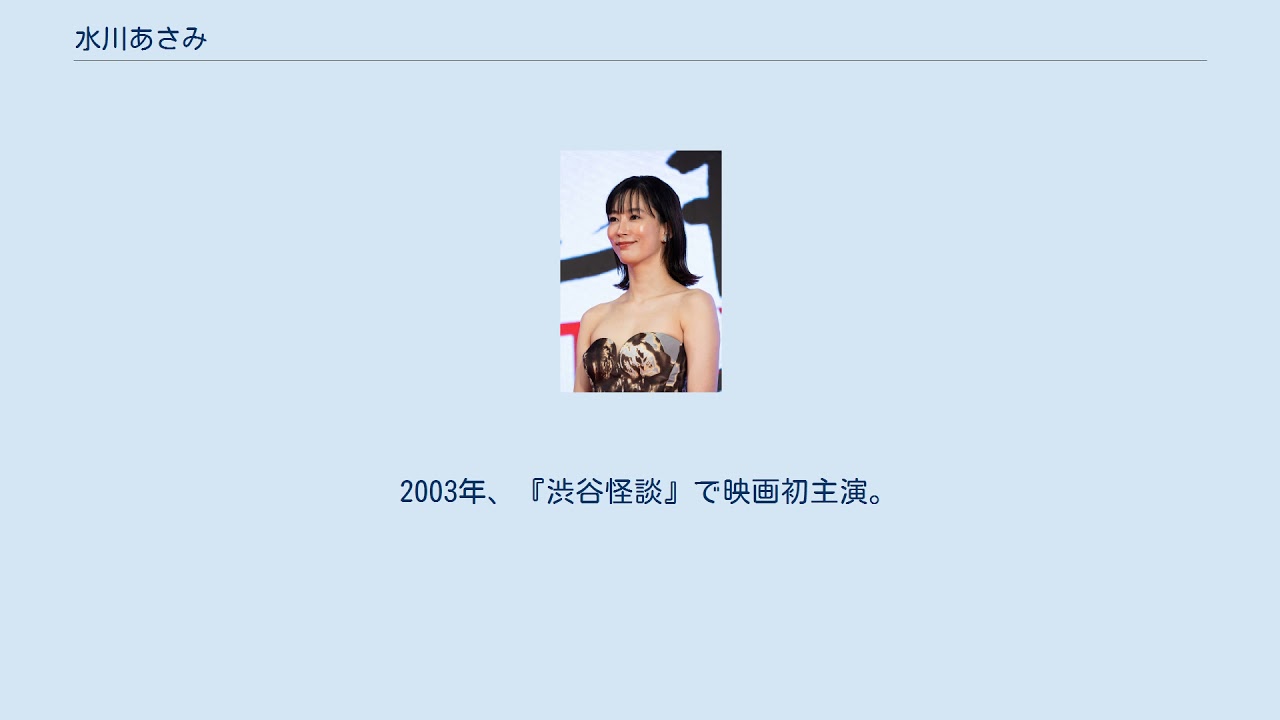 水川 あさみ(みずかわ あさみ、1983年〈昭和58年〉7月24日 – )は、日本の女優。