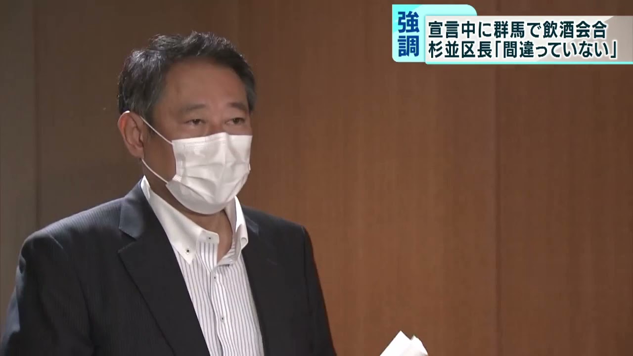 東京・杉並区の田中区長が、緊急事態宣言中に群馬県のゴルフ場での会合に参加し飲酒をしていたことについて、「間違っていないと思っている」と強調しました。