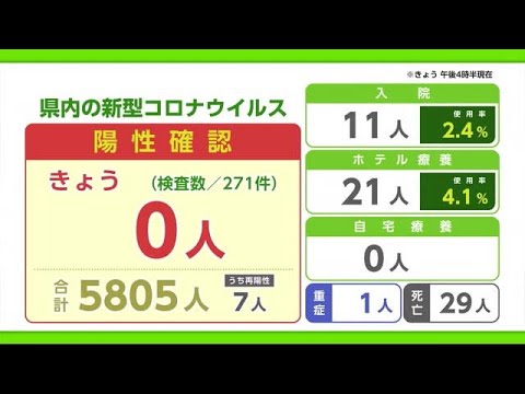 Share Facebook Twitter Pinterest LinkedIn 県内の新型コロナウイルスの状況です。 県は14日新たに271件の検査があり、7月11日以来、95日ぶりに陽性が確認された人はいなかったと発表しました。 現在11人が入院していて病床使用率は2.4%、1人が重症です。 また、21人がホテルで療養していて使用率は4.1%、自宅で療養している人はいません。 コロナ陽性佐賀県新型コロナ
