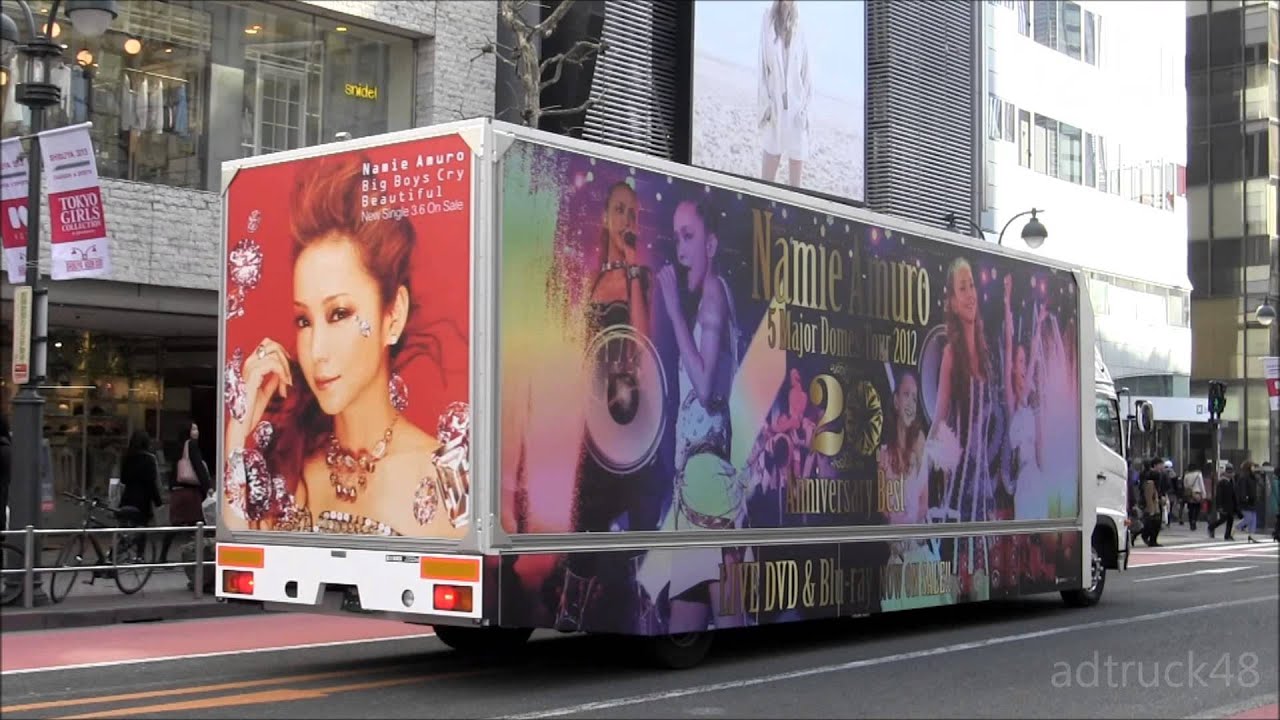 渋谷を走行する、安室奈美恵:LIVE DVD&BD『namie amuro 5 Major Domes Tour 2012』&ニューシングル『Big Boys Cry/ Beautiful』にラッピングされた宣伝トラック。 ad-truckadvertisementBig Boys Cry/ BeautifulNamie Amuro (Musical Artist)アドトラック安室ちゃん安室奈美恵安室奈美恵の全国ドームツアー宣伝トラック