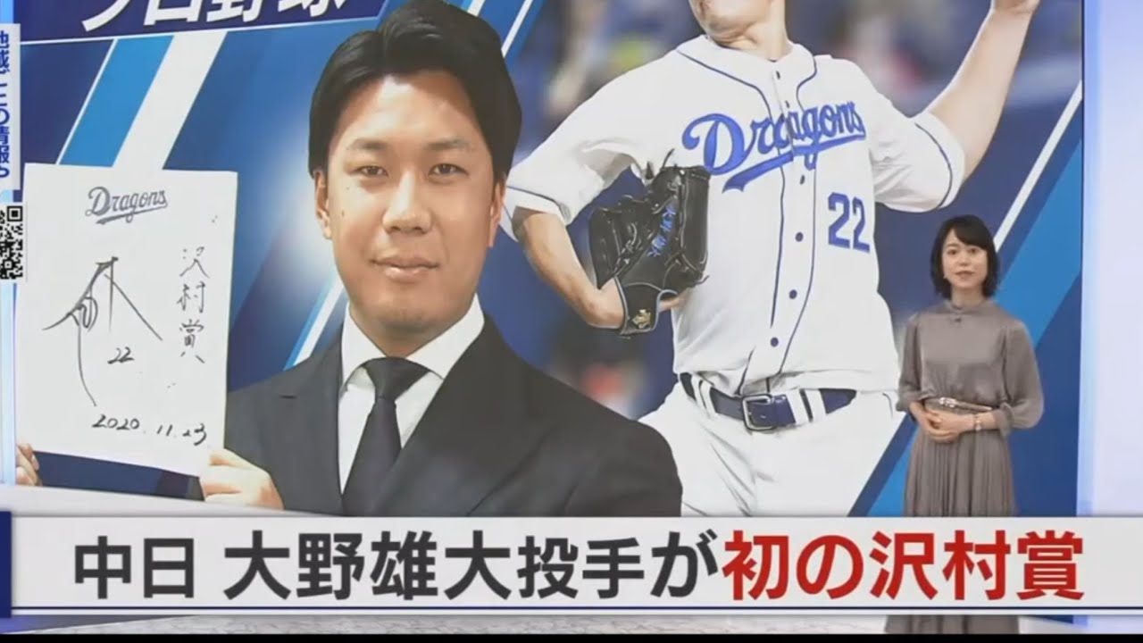 中日ドラゴンズ 大野雄大投手 沢村賞初受賞 ニュース2本 2020/11/23