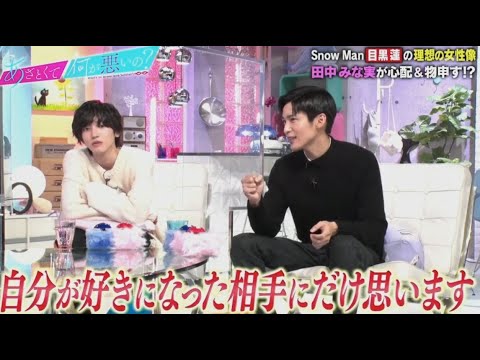 Snow Man 目黒蓮の理想の女性像田中みな実が心 配 &物申す! ? あざとくて何が悪いの? 2021年10月16日