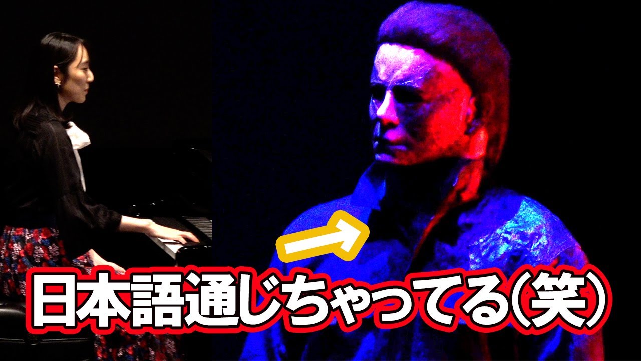 また、松井が続けて、『ハロウィン』シリーズのテーマ曲を生演奏。何も知らないこがけんが驚く中、マイケル・マイヤーズが登場して、会場も驚きだった。