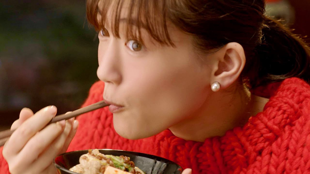 親指を立てて「具〜!具〜!具〜鍋!」とオリジナルソングを披露しながら「具鍋」を楽しむ姿が印象的。普段から食べることが大好きという綾瀬の、自然体でキュートな食べっぷりをぜひ楽しみたい。