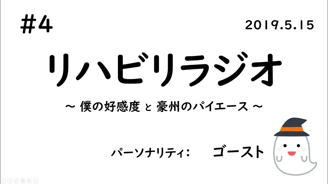 Share Facebook Twitter Pinterest LinkedIn リハビリラジオ #4 20190515 ・職場での好感度アップを狙って ・お茶漬け味のシュークリーム ・フルオープンのハイエース爆誕(ウソ) 30代負け組ラジオ今ここにある危機とぼくの好感度について