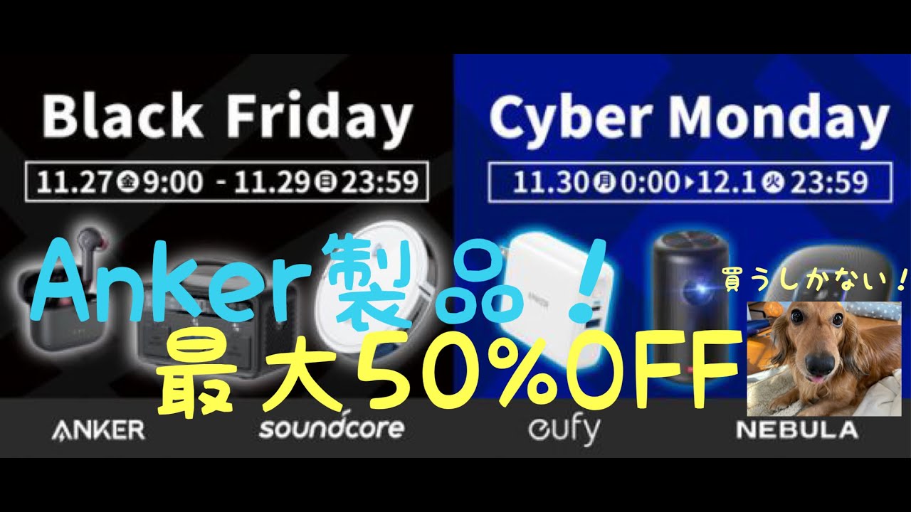 anker Japan 11/27から開催されるAmazonブラックフライデー&サイバーマンデーにて何と!169製品以上を最大50%OFFで販売です!