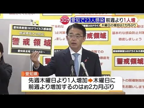 Share Facebook Twitter Pinterest LinkedIn 愛知県では28日、新たに23人が新型コロナウイルスに感染していることがわかりました。 名古屋市で11人、東郷町で2人、豊橋市や豊田市で1人、などとなっています。 23人は、先週木曜日と比べ1人多くなり、木曜日に前の週より感染者数が増加するのは、8月26日以来、約2カ月ぶりです。 岐阜県では4人の感染が確認されました。各務原市で2人などとなっています。 三重県では、四日市市で2人の感染が確認されました。 コロナコロナウイルス感染愛知県感染