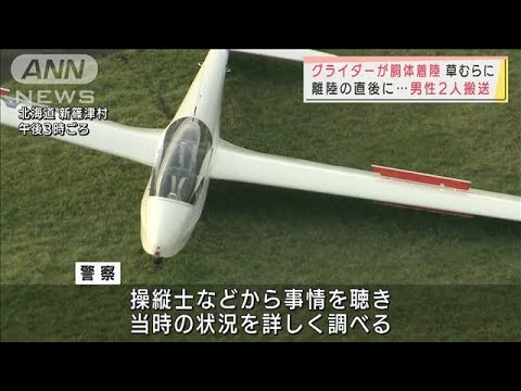 グライダーに乗っていた60代の男性2人が腰の痛みを訴えるなどして病院に運ばれましたが、命に別状はありません。