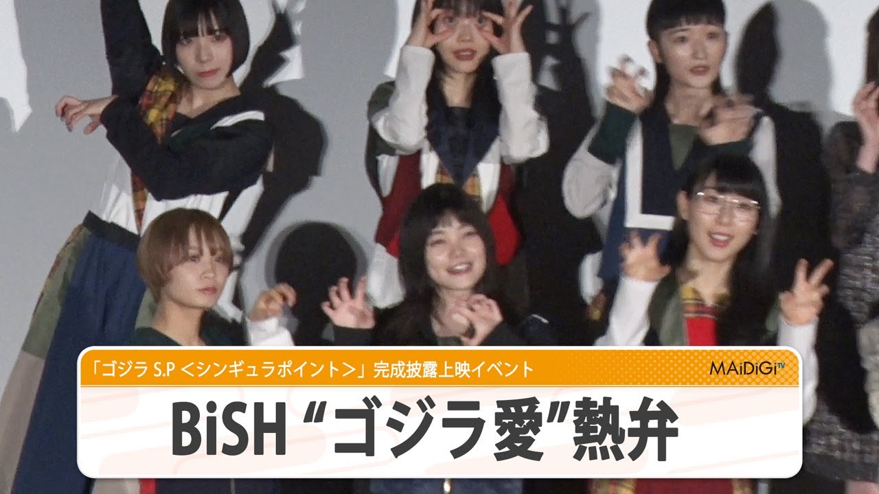 怪獣映画「ゴジラ」の完全新作のテレビアニメシリーズ「ゴジラ S.P <シンギュラポイント>」の完成披露上映イベントが3月19日、TOHOシネマズ 日比谷(東京都千代田区)で開催され、宮本侑芽さんら声優陣、オープニングテーマ「in case…」を担当する人気グループ「BiSH」も登場した。