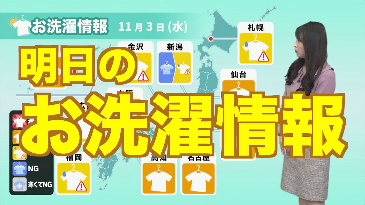 また、北海道は寒気を伴った低気圧の影響で、雨の降りやすい天気です。こちらも室内干しを推奨します。