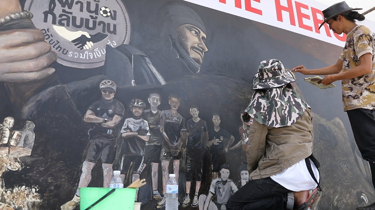 洞窟から少年ら13人が助け出されたタイ北部チェンライで、地元の芸術家らが、救出劇の情景を巨大な絵画に描いている。活動中に亡くなった男性ダイバーの銅像も制作中で、どちらも洞窟近くに建設される記念館に展示し、教訓を後世に伝えたいと考えている。