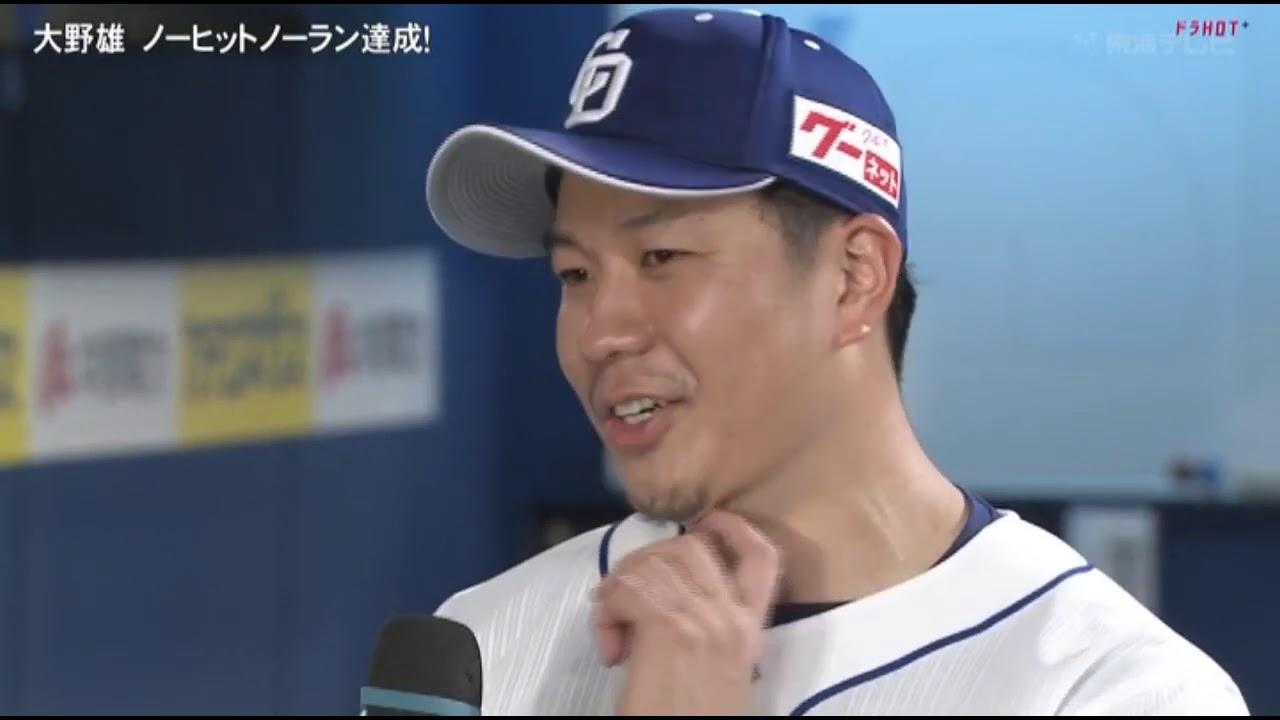 2019年9月14日に中日ドラゴンズ 大野雄大投手が阪神戦でノーヒットノーランを達成、生中継していた東海テレビ ドラHOT+での対戦全打席紹介と直後の岩瀬仁紀さんのインタビュー、試合振り返り。