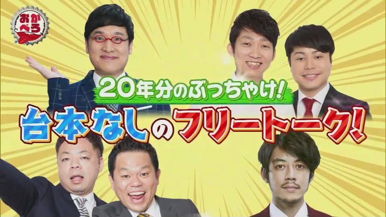『おかべろ』ナインティナイン岡村隆史さんがメインのトーク番組!祝200回でめったに集まらない『お笑い売れっ子同期』22期生が勢ぞろい! 南海キャンディーズ山里、キングコング西野、ノンスタイル、ダイアンが台本なしで年表に沿ってトーク!同窓会のような…なんだかんだ仲の良さが感じられます!ナイナイ岡村隆史と南キャン山里の結婚の話もあります。 おかぺろお笑いキンコン西野ダイアンノンスタイル南キャン山里岡村隆史結婚