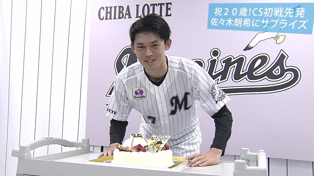 おととい20歳の誕生日を迎えたばかりの佐々木投手に担当記者からバースデーサプライズ!喜んでくれたものの、まさかの結末が待っていました。なお、今一番ほしいものは車だそうです。