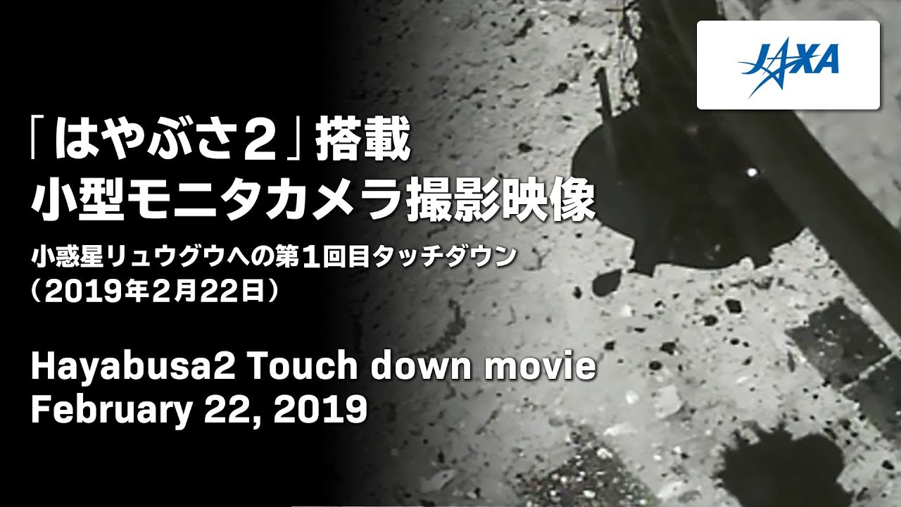 本動画は2019年2月22日(日本時間)「はやぶさ2」が小惑星リュウグウへの第1回目タッチダウンの際、搭載している小型モニタカメラで撮影したものです。動画の再生速度は実際の時間の5倍速です。