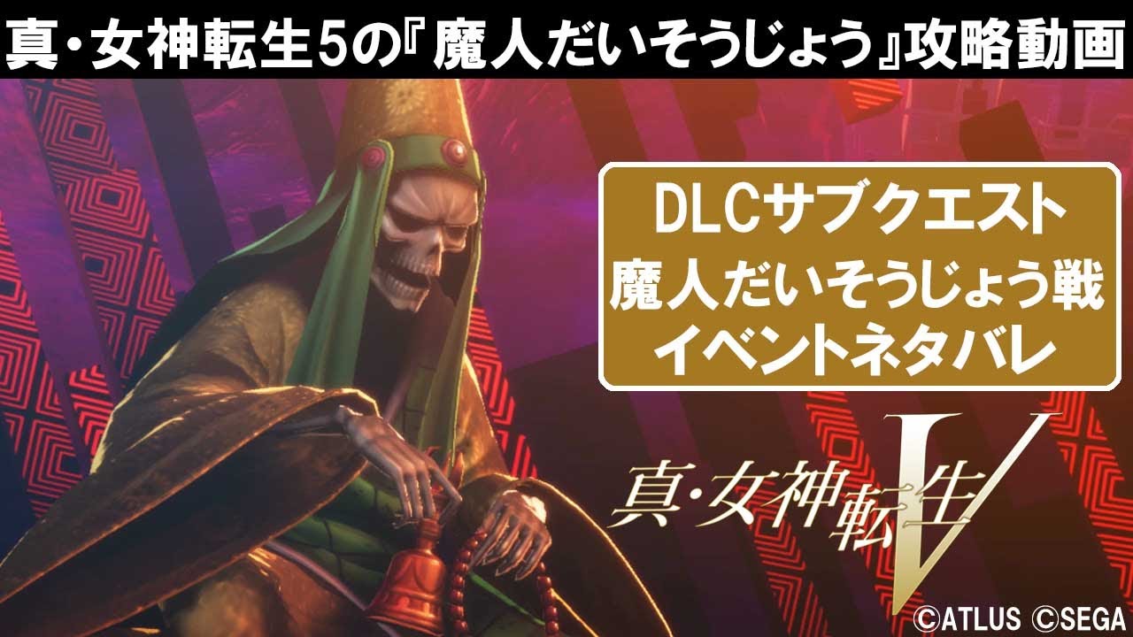 真・女神転生5の『魔人だいそうじょう』攻略動画です。ネタバレあり。DLCサブクエスト『人修羅と九人の魔人』における、第2戦目で相手にすることになります。魔人だいそうじょうは割りかし倒すのは簡単な方。詳細は攻略サイトのほうで解説してます。