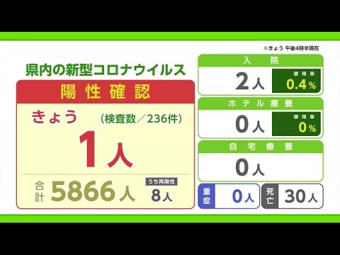Share Facebook Twitter Pinterest LinkedIn 新型コロナウイルスの状況です。 県は17日新たに236件の検査があり、武雄市の10代男性1人の陽性が確認されたと発表しました。他県の陽性者関連だということです。 現在2人が入院していて、病床使用率は0.4%です。また、ホテルで療養している人がゼロになりました。 去年11月2日以来、約1年ぶりだということです。 コロナ陽性佐賀県新型コロナ