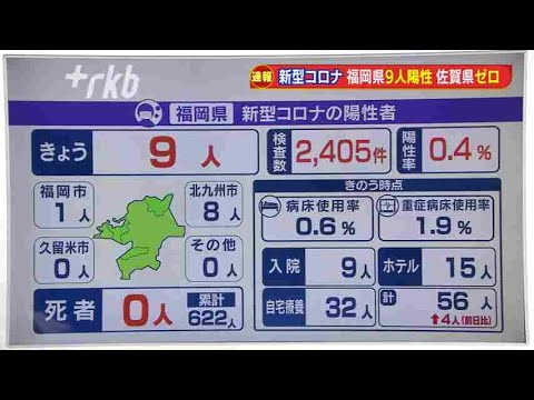 福岡県は18日、新型コロナウイルスの検査で新たに9人の陽性を発表しました。