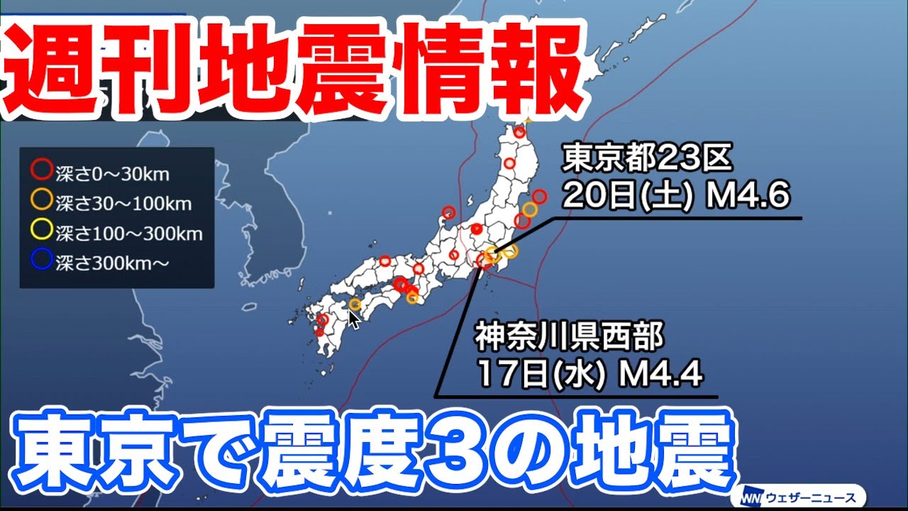 東北から九州にかけて、震央が陸域の地震がやや目立ちます。この期間に震度3以上の地震は2回発生し、いずれも関東を震源とする地震です。(11月15日~21日10時の集計)