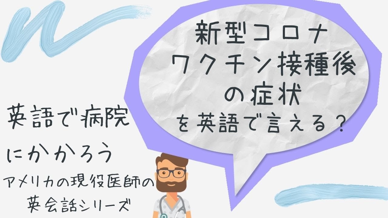 アメリカなど英語圏に、住んだり、旅行したりして、病気になったらどうしようって思ったことはありませんか? 病院で英語でなんて言ったらいいかを、アメリカで現役医師をしている僕と、生きた英語を一緒に学んでいきましょう。 今回は、「新型コロナワクチン接種後の症状を英語で言える?」です。言えますか? adverse effectCOVIDCOVID-19Englishimmunizationshotside effectvaccinationVACCINEアメリカアメリカのお医者さんコロナ症状ドクター副作用副反応医療医療英語医者新型コロナ新型コロナワクチン英会話英語