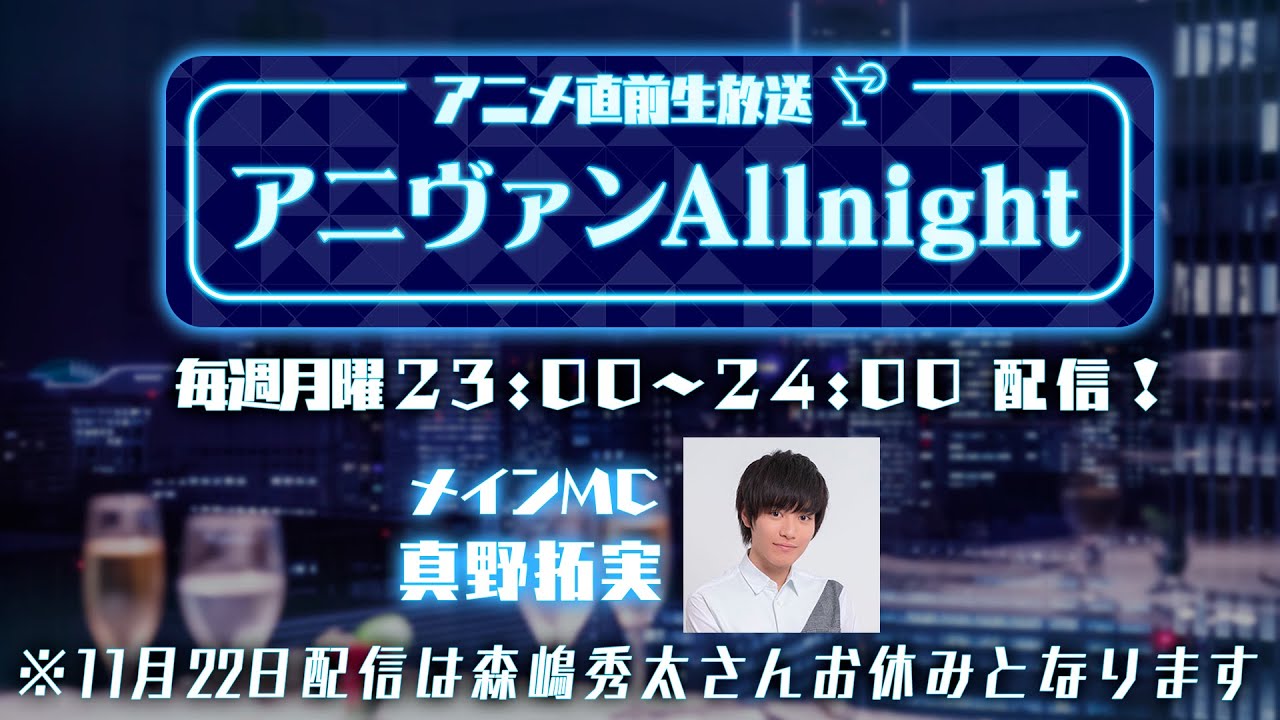 毎週月曜23:00は魔法の時間。「アニメ直前生放送 アニヴァン ALLnight」開店です。