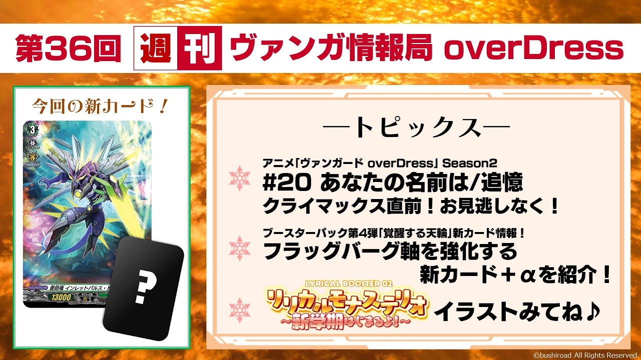 毎週火曜21時より、週刊ヴァンガ情報局 overDressをお送りします!■出演■ MC:#真野拓実 アシスタント:#進藤あまね ■番組内容 「週刊ヴァンガ情報局 overDress」とは? アニメに関するお話や、最新カード情報、イベント情報など、「カードファイト!! ヴァンガード」のあらゆる最新情報をお届けする番組! ひと足早く、ヴァンガードの最新情報をゲットしよう! ヴァンガードファイター必見の番組です! #ヴァンガード #VGD #生配信 #TCG overdressTCGVanguardVGVGDアニメヴァンガヴァンガードオーバードレスカードゲームカードファイト!! ヴァンガード overDressブシロードホビー