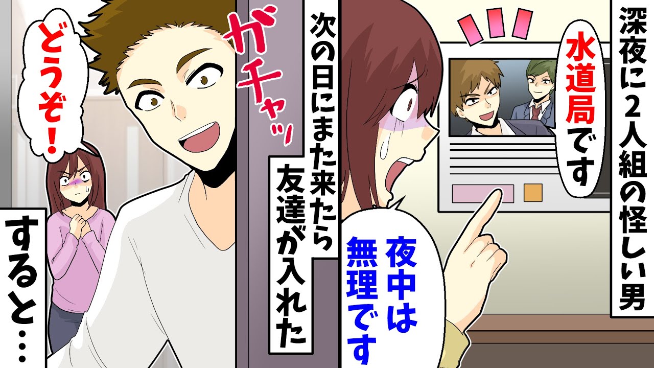 夜中の1時にピンポーンとチャイムが鳴った。怖いのでじっと静かにしていると、「水道局です。水質調査に来ました。開けてください」男性の声でそう言われた・・・